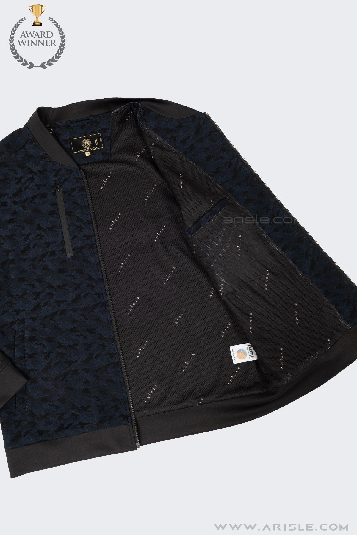 Nằm trong BST Áo Khoác Golf mới nhất của ARISLE - Metallic Bomber được thiết kế với kiểu Bomber Jacket Năng Động và chất liệu chính "Metallic Camo" - họa tiết Camo Ánh Kim độc quyền được ARISLE đặc biệt phát triển - khả năng tương tác với ánh sáng tạo nên các hiệu ứng chuyển màu đặc biệt, ánh màu sang trọng và hiệu ứng độc đáo của hàng Hi-End, càng nhìn càng sang trọng & cuốn hút. Phom áo cũng được nâng cấp với các đường cắt cúp tinh tế cho phom áo tôn dáng và hiện đại hơn.