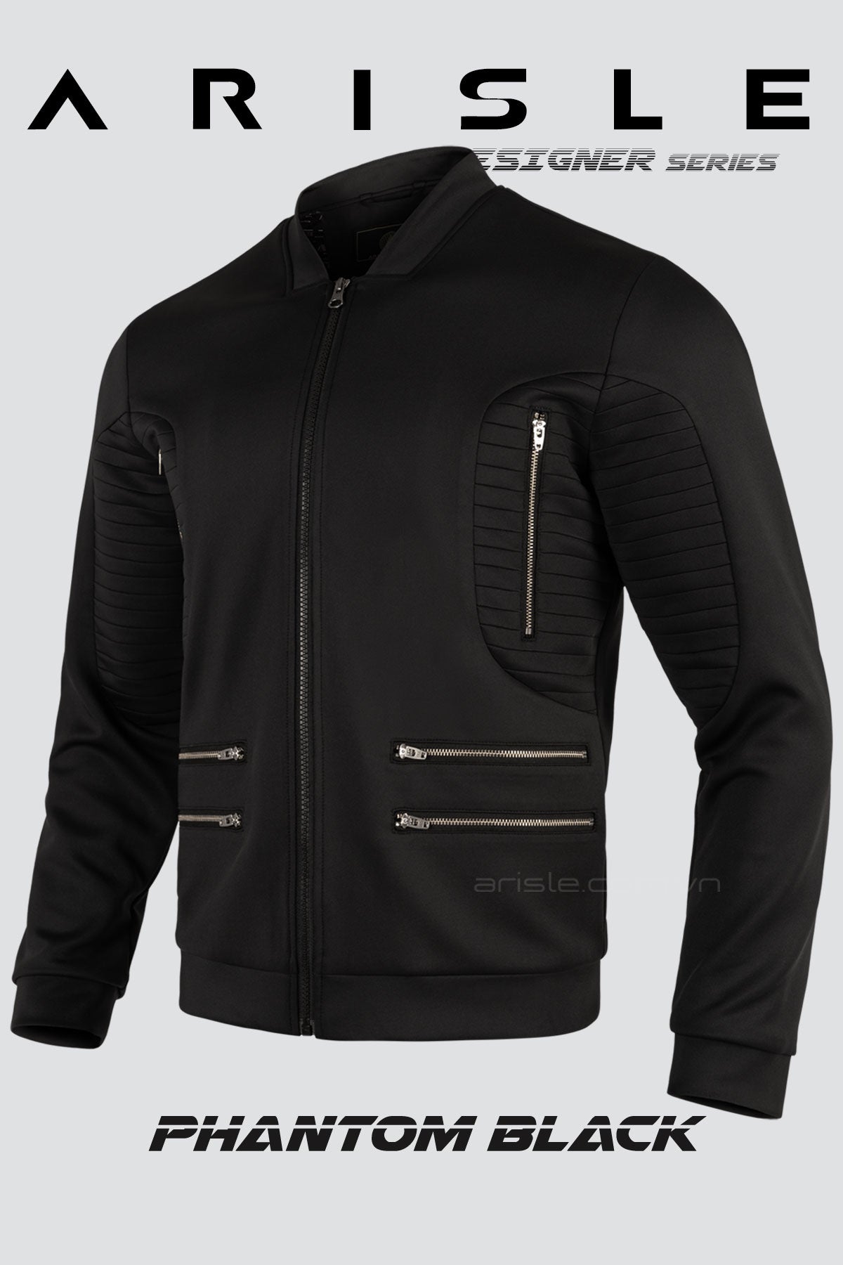 - Các chi tiết túi sườn và túi kéo phần ngực được cắt may độc đáo trên nền chất liệu Premium Tech Pique đen lì, cắt may tinh xảo nổi bật thiết kế High Fashion