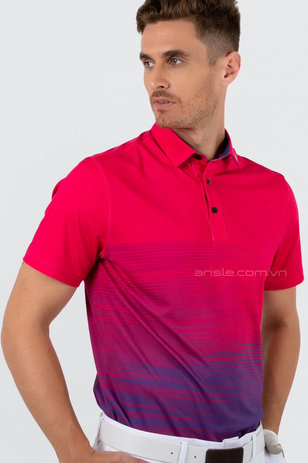 Áo Polo Golf ARISLE Pro-Golfer Royal Fuchsia sử dụng chất liệu Stretch Jersey được dệt bằng siêu sợi ultradu đặc biệt co giãn cực tốt nhưng lại cực kỳ đanh mịn không bị nhăn nhão như các chất liệu co giãn khác, sợi vải được xử lý khử bóng (shiny) tạo nên bề mặt chất liệu mịn, lì sang trọng