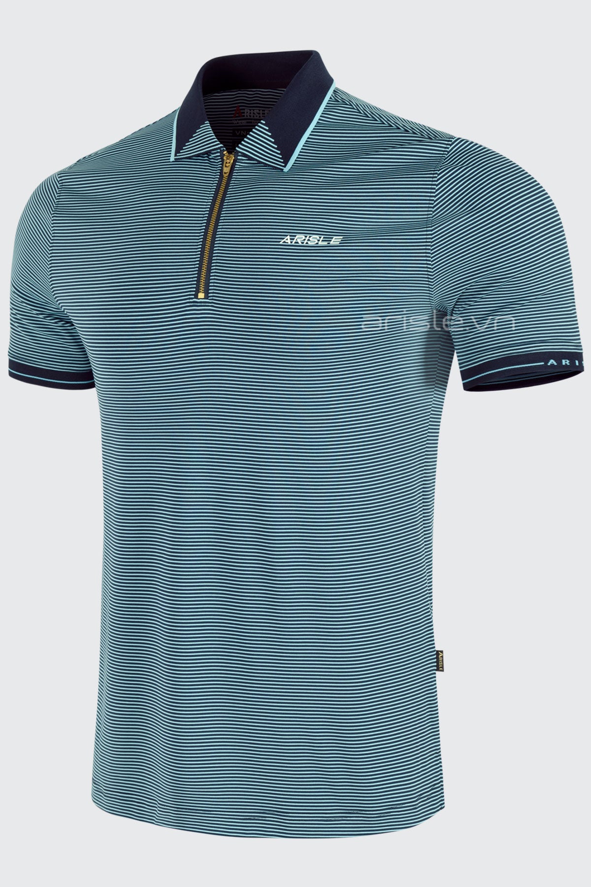 Áo Polo Golf Nam ARISLE Gold Zip sử dụng chất liệu Stretch Jersey vi sợi khử bóng, tạo nên kết cấu vải co giãn nhưng không bị nhăn nhão như các chất liệu co giãn khác, sợi vải được xử lý khử bóng (shiny) tạo nên bề mặt chất liệu mịn, lì sang trọng