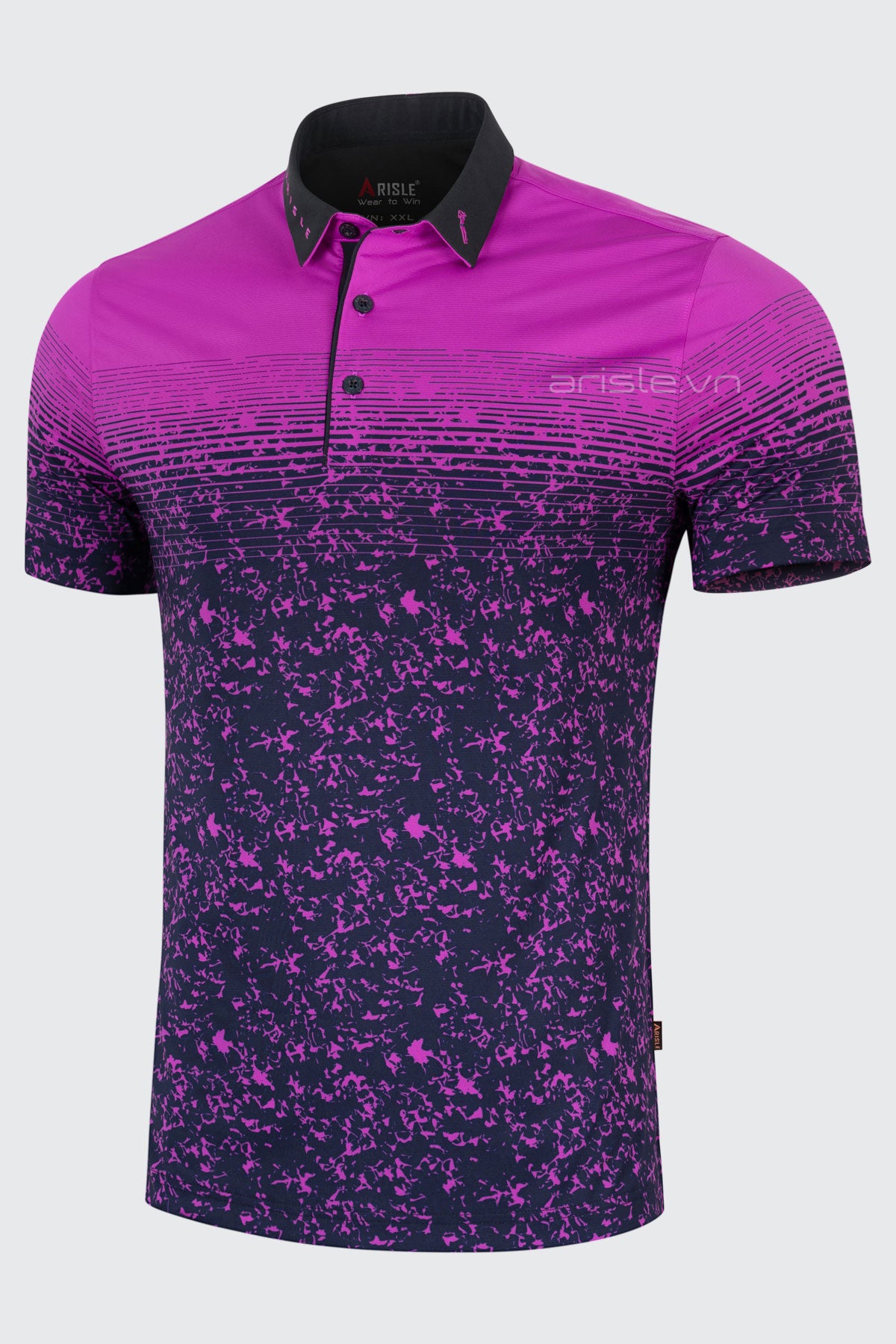 Áo Polo Golf Nam ARISLE Magenta Camo sử dụng chất liệu Stretch Jersey được dệt bằng siêu sợi ultradu đặc biệt co giãn cực tốt nhưng lại cực kỳ đanh mịn không bị nhăn nhão như các chất liệu co giãn khác, sợi vải được xử lý khử bóng (shiny) tạo nên bề mặt chất liệu mịn, lì sang trọng