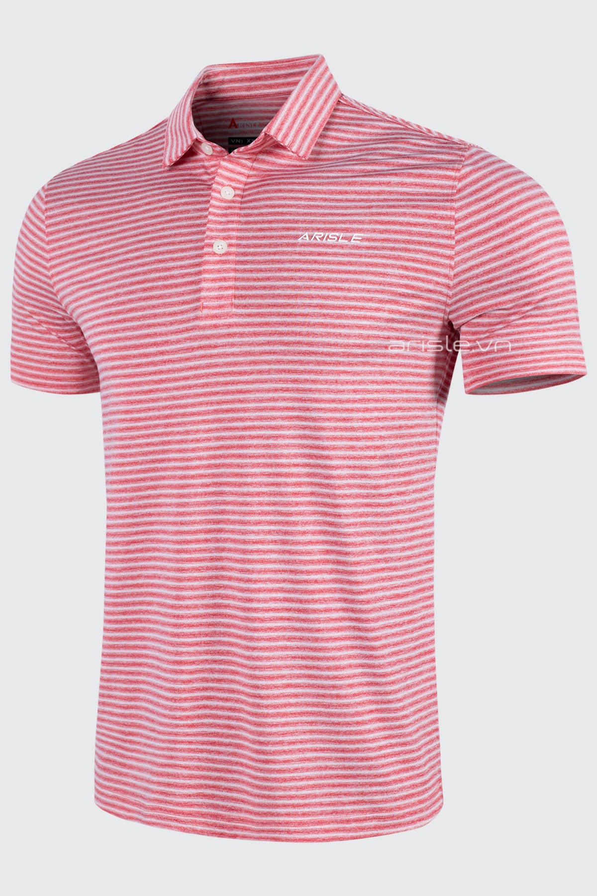 Áo Polo Golf Nam ARISLE Pixel Stripe Coral Red sử dụng chất liệu Stretch Jersey vi sợi khử bóng, tạo nên kết cấu vải co giãn nhưng không bị nhăn nhão như các chất liệu co giãn khác, sợi vải được xử lý khử bóng (shiny) tạo nên bề mặt chất liệu mịn, lì sang trọng