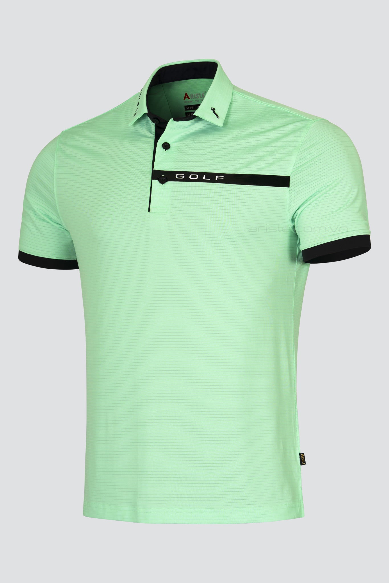 Áo Polo Golf ARISLE Pro-Golfer Pastel Green Stripe sử dụng chất liệu Stretch Jersey được dệt bằng siêu sợi ultradu đặc biệt co giãn cực tốt nhưng lại cực kỳ đanh mịn không bị nhăn nhão như các chất liệu co giãn khác, sợi vải được xử lý khử bóng (shiny) tạo nên bề mặt chất liệu mịn, lì sang trọng