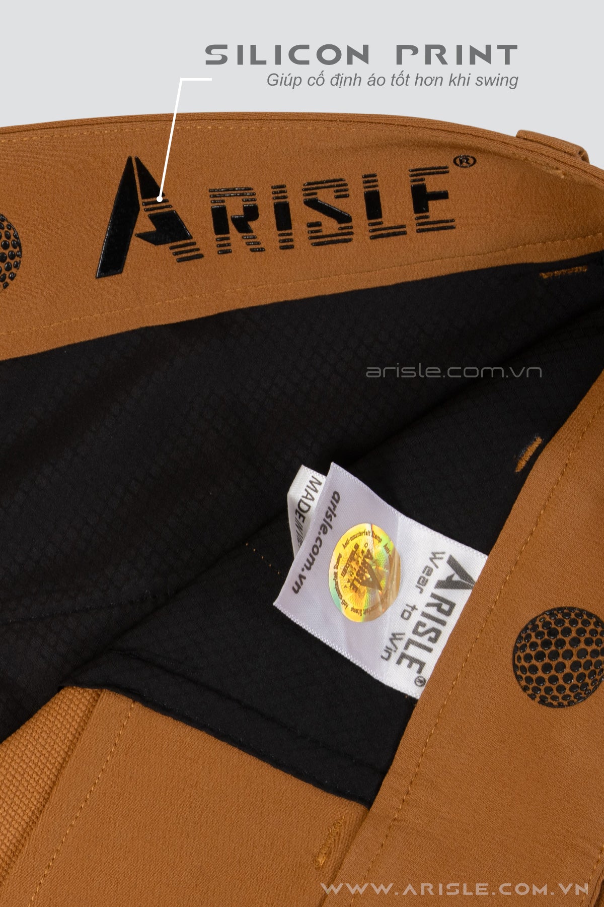 "Đẳng Cấp Với màu quần không thể chất hơn từ ARISLE - Màu Sand Camel mang sắc cam nâu sang trọng, tinh tế và hiện đại, tạo cảm giác thanh lịch, dễ phối đồ và luôn giữ được vẻ sang trọng từ sân golf đến công sở"