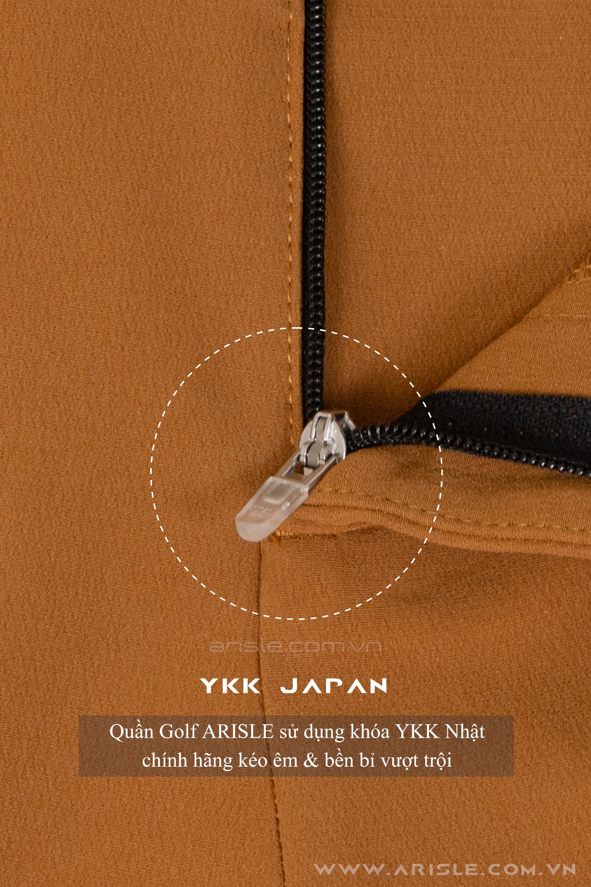 "Dây Kéo Đầu Bật YKK Nhật Bản kéo êm khóa mượt, bật êm nhẹ nhàng, cho tuổi thọ sử dụng quần vượt trội, không bị tình trạng quần chưa hư khóa đã hư"