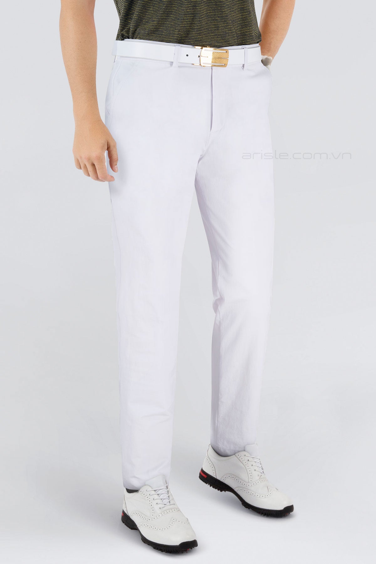 "Dành cho các GOLFER yêu thích chất liệu TWILLSTRETCH - chất liệu có độ đanh & kết cấu medium weigh cho phom quần đứng dáng dành cho các Golfer thích cảm giác "có trọng lượng và cứng mình". Quần Golf ARISLE TWILLSTRETCH nay có thêm màu trắng sáng sang trọng, được may tỉ mỉ theo phong cách may đo TAILOR-FIT trứ danh"